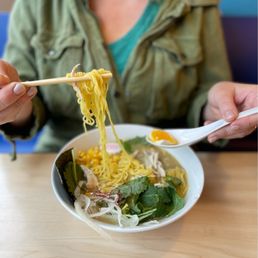 This super cute and well-decorated spot boasts an ambiance reminiscent of a bustling izakaya, but with the added bonus of being much more spacious. Ramen Nirvana: I had the Shio Paitan ramen, and it was absolute bliss! The broth was incredibly flavorful and authentic, reminding me of the delicious ramen from Japan. Freshness Reigns Supreme: You can truly taste the quality and freshness of the ingredients in every dish. Plus, everything arrives piping hot and ready to devour. Friendly & Attentive Service: The staff is great. They're friendly, attentive, and happy to answer any questions you might have about the menu.
