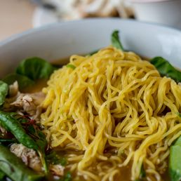 Super cool delicious chicken based ramen. I have been a fan of this ramen restaurant for 5 plus years. It's really unique and has a fun tasty menu. I love chicken ramen and this place does it right. The noodles are a great match for the stock. Thin and springy and the stock flavor is rich and deep. Must get an egg topper too! Most importantly, get the rice and chicken drippings. It's so epically good. White rice? Chicken fat flavor of amazing on top? Decadence done right. Service is always great. The tables are separate or along a combined bar like setting. It's normally very busy so I try to go at odd times so I am not waiting. There is not much space in the restaurant for eating or waiting so timing is key. Bathroom is on the top floor, clean and convienent. The decor is fun and modern even though it's been open for a while now. No parking really. I have always walked there from a garage in the area or from the metro. Many a nights watching the capitals and hitting up this spot first. Their desserts are good too and their drinks are delicious. The donut is a meh for me but the sweet tea? I would drink it endlessly. So much sugar. So much joy. Sweet tea done right!